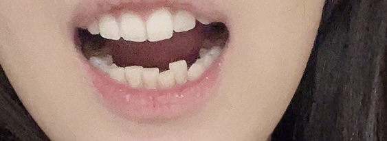 원래 잇몸 자리가 부족해 아랫니가 하나가 뒤로 들어가서 나오긴 했지만 윗니는 고르기 때문에